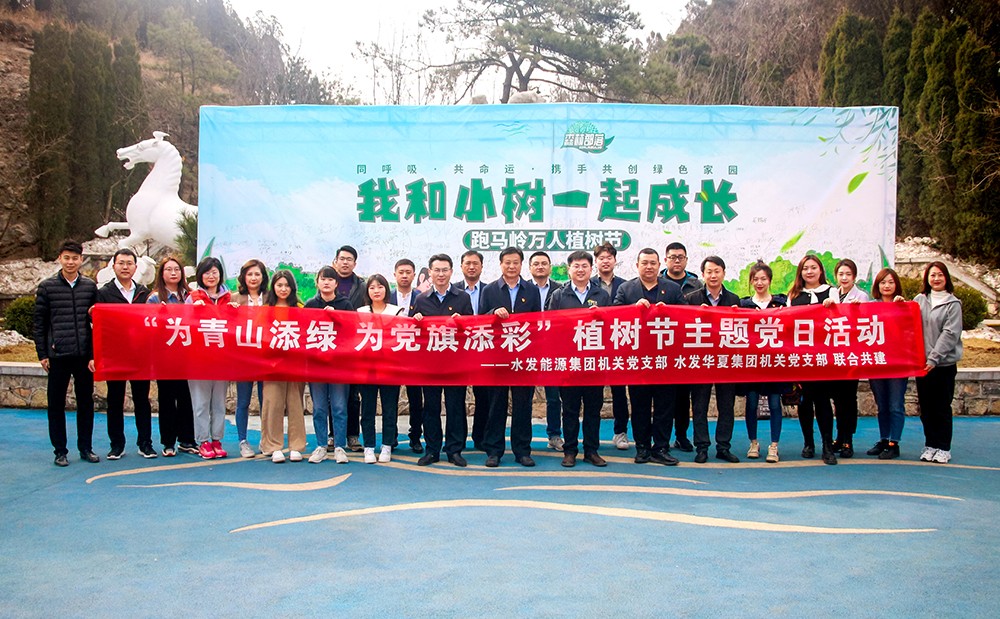 3月10日,春回大地,生機勃發。為牢固樹立“綠水青山就是金山銀山”的新發展理念,提升社會責任感和保護生態環境的意識,水發能源集團機關黨支部與水發華夏集團機關黨支部聯合開展了“為青山添綠 為黨旗添彩”植樹節主題黨日活動。