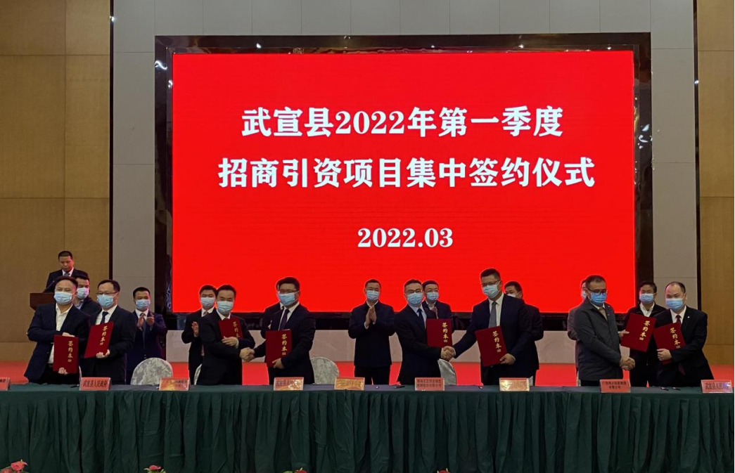 近日,水發(fā)興業(yè)能源集團黨委委員、副總裁周青一行應(yīng)邀參加廣西省來賓市武宣縣2022年第一季度招商引資項目集中簽約儀式,與武宣縣簽訂《廣西武宣縣整縣分布式光伏項目合作協(xié)議》。簽約儀式由武宣縣委副書記陳禮鋒主持,來賓市市長廖和明、武宣縣委書記楊世爵、縣長陳前平出席儀式。