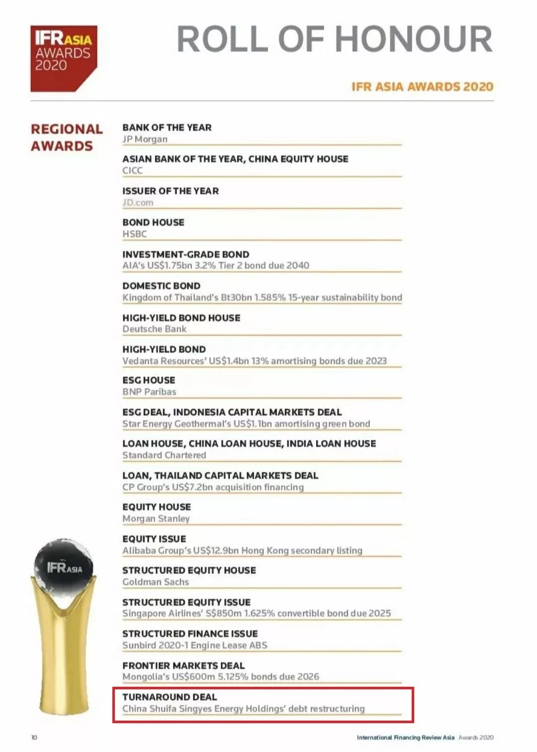 水發興業能源獲IFR 亞太2020 Turnaround Deal大獎