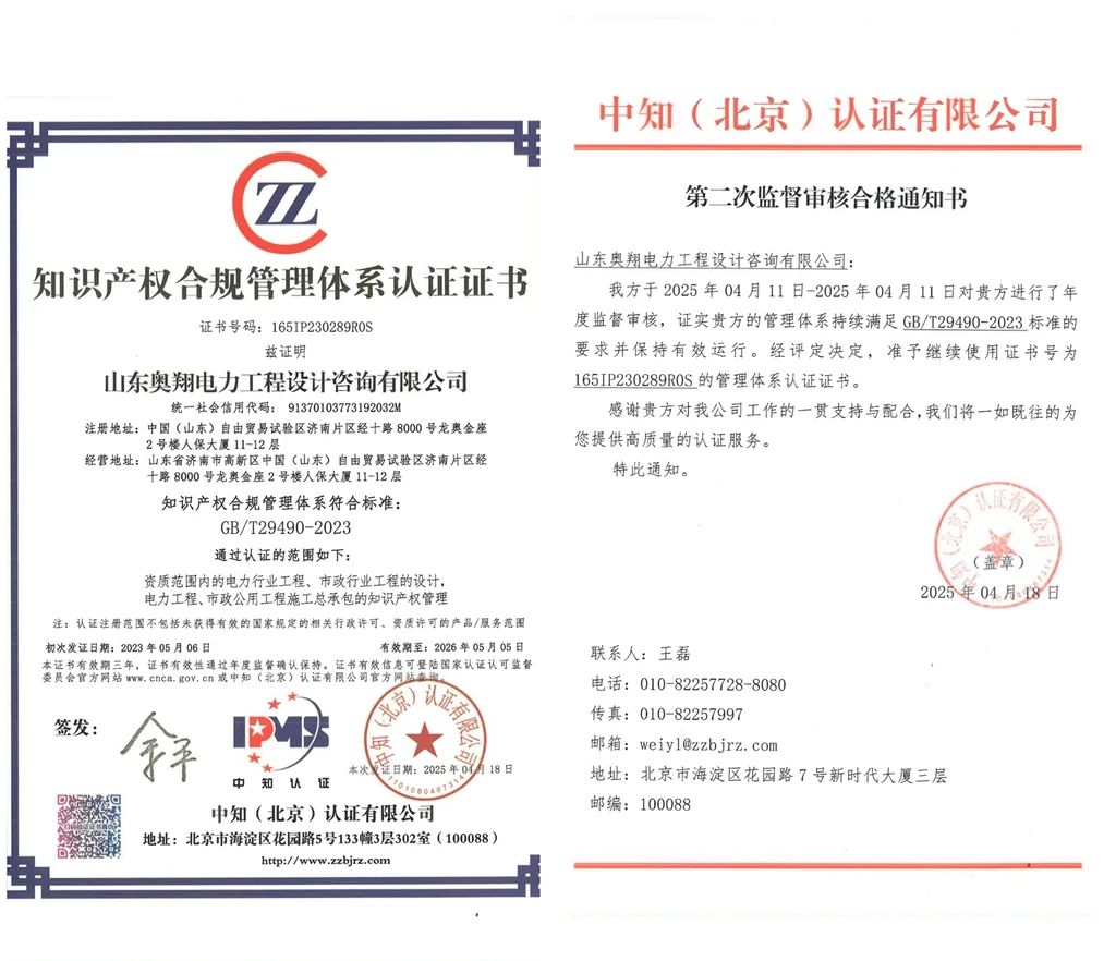 山東奧翔電力工程設(shè)計(jì)咨詢有限公司再獲國家級(jí)認(rèn)證